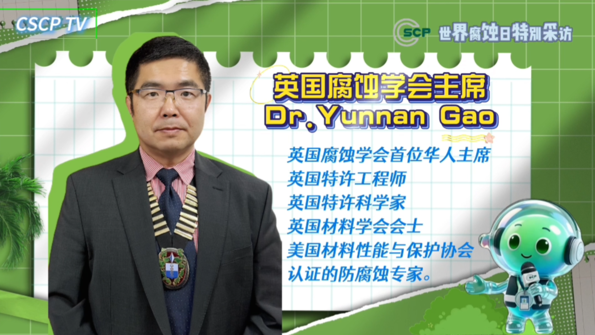 【第十三届全国腐蚀与防护大会】英国腐蚀学会主席发来贺电