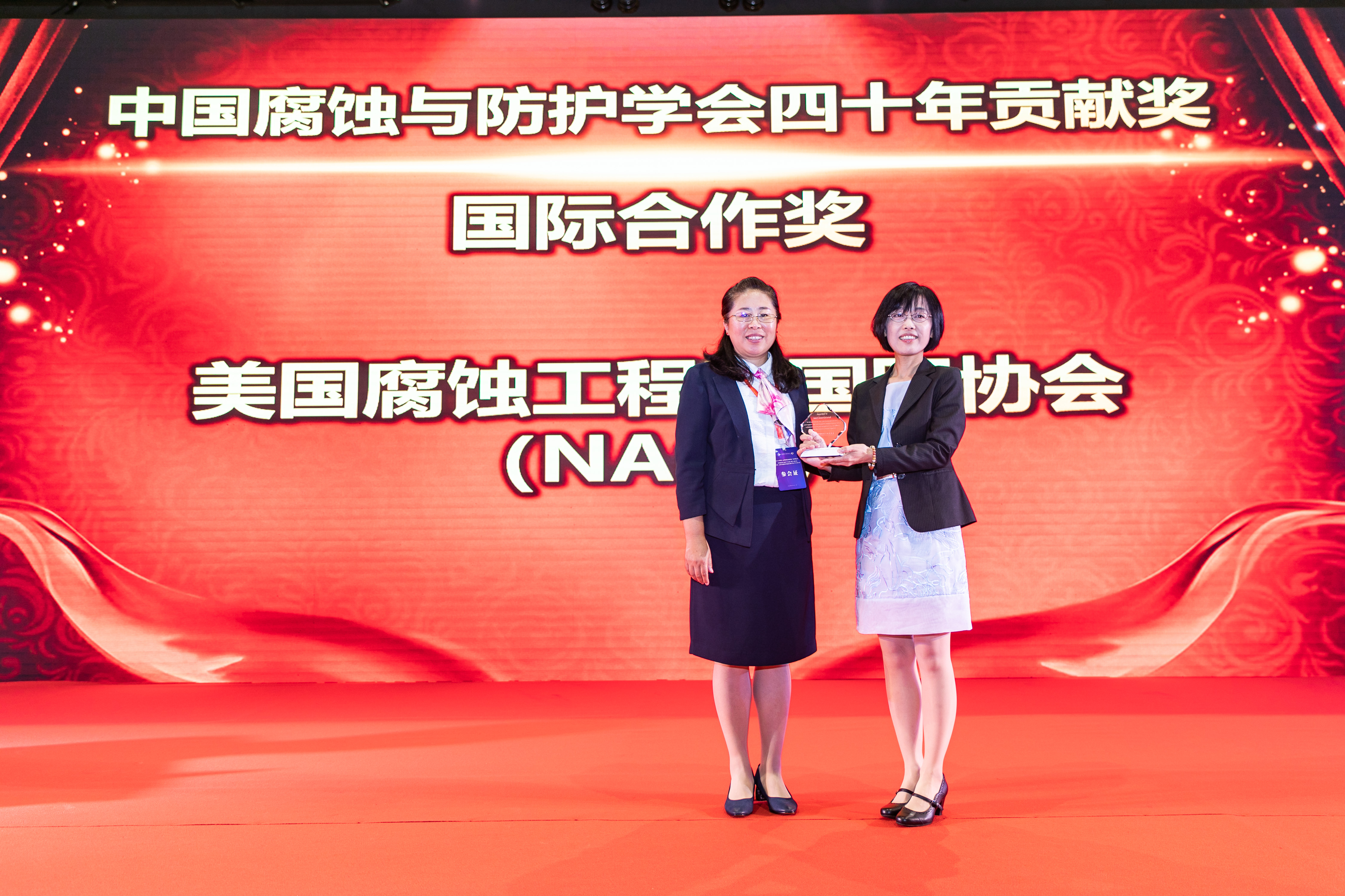 在获悉学会举办成立四十周年庆祝会,NACE国际向学会发来了贺信。为表彰NACE国际与学会的友好合作,学会秘书长杜翠薇教授向NACE国际颁发了“国际合作奖”奖牌。