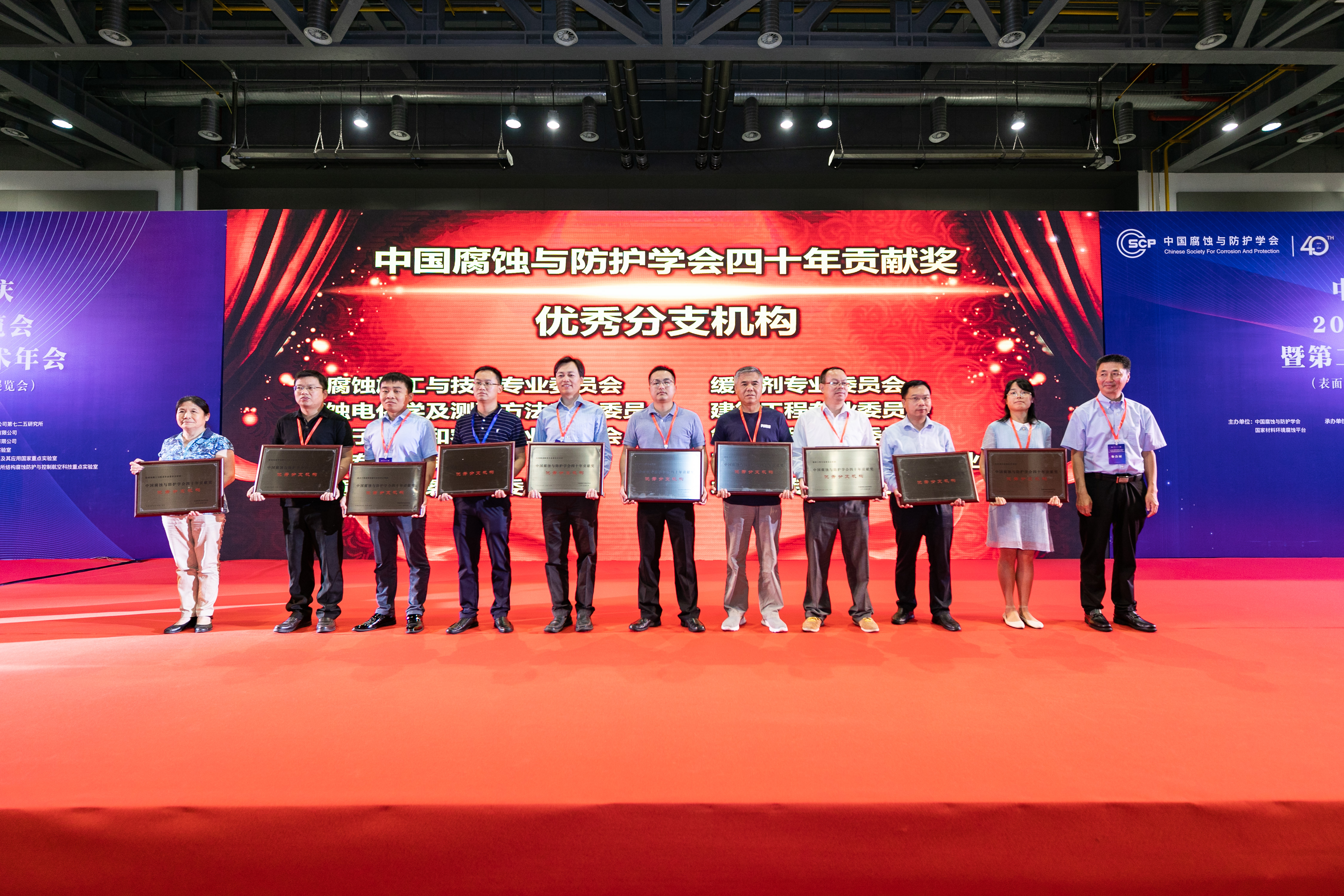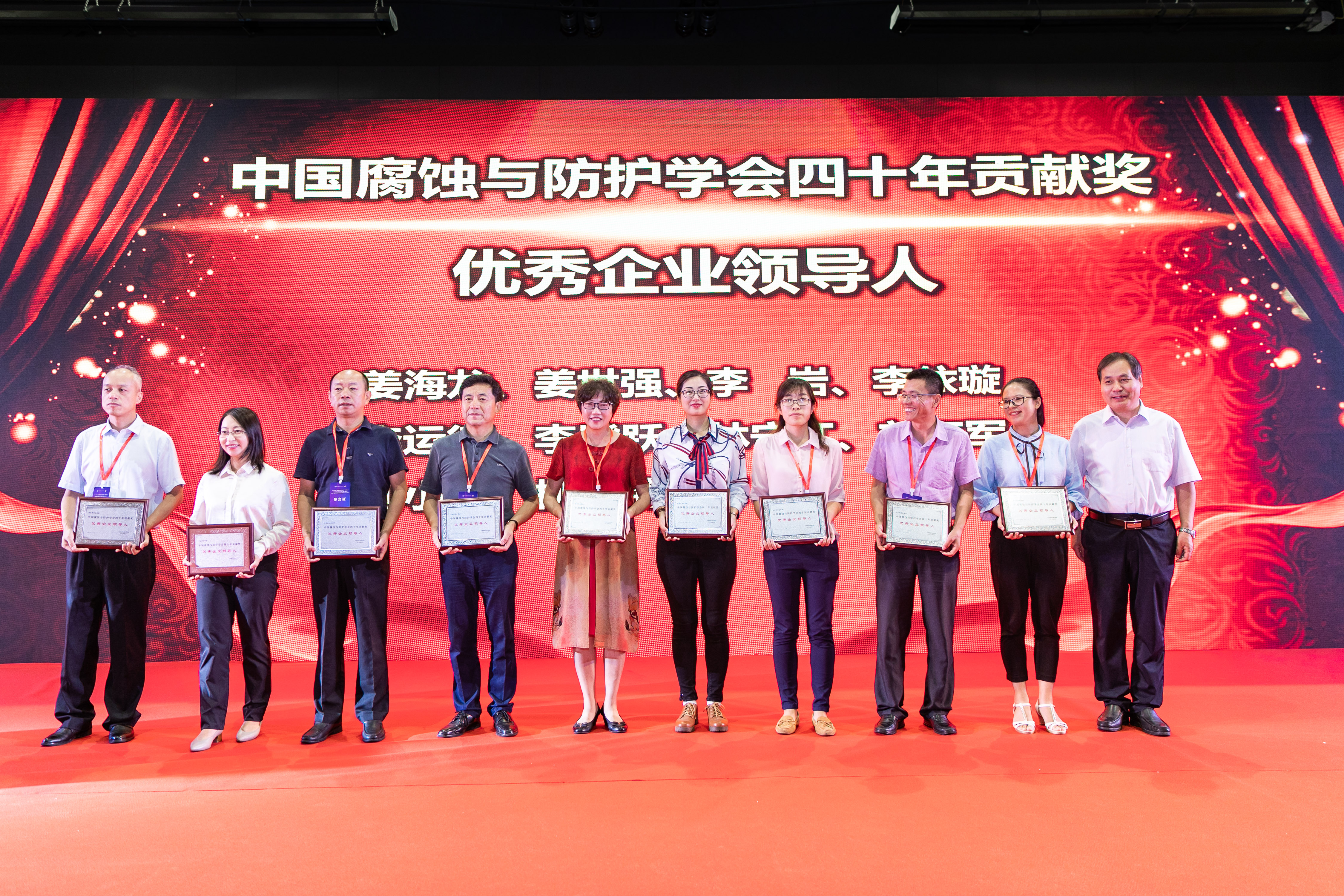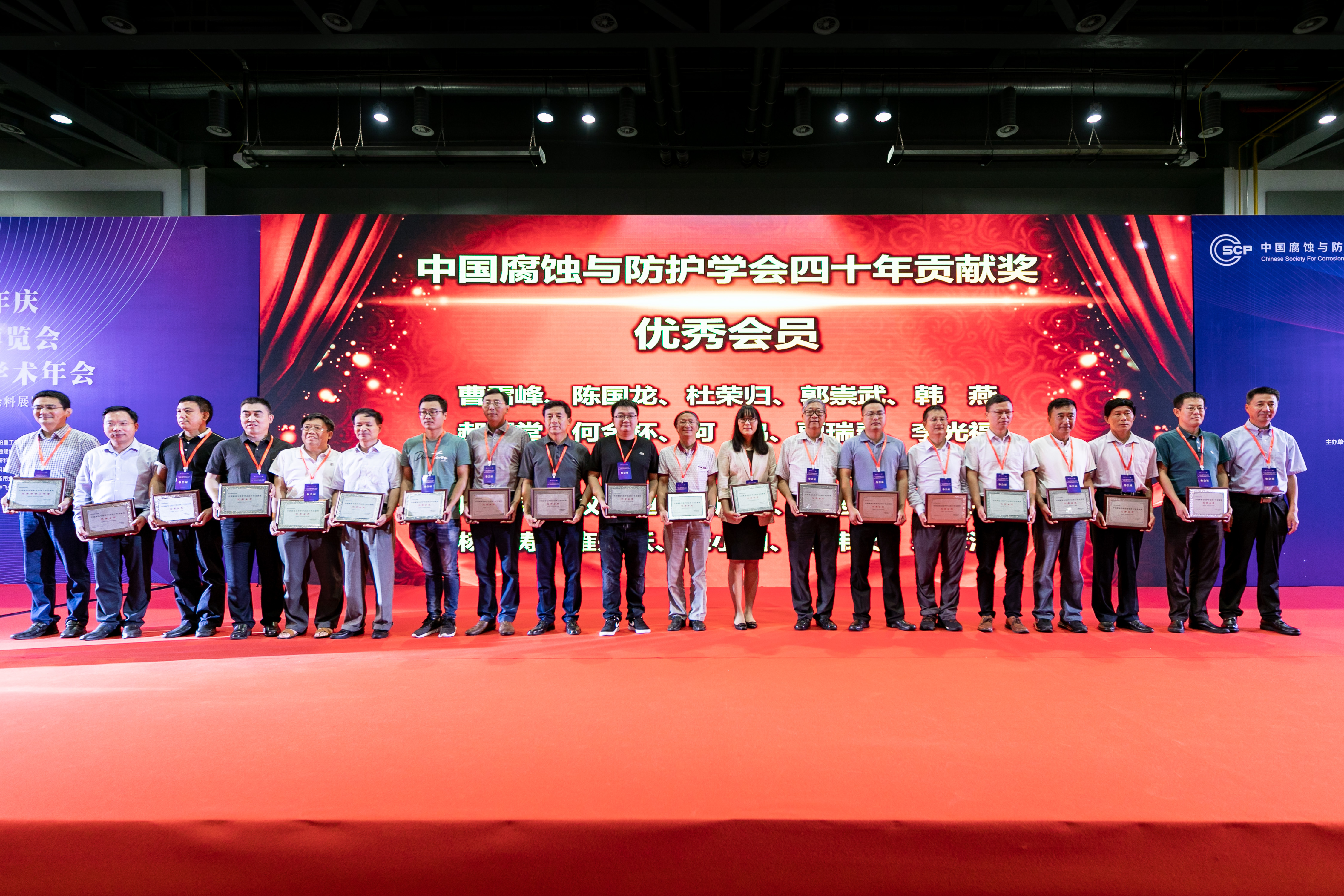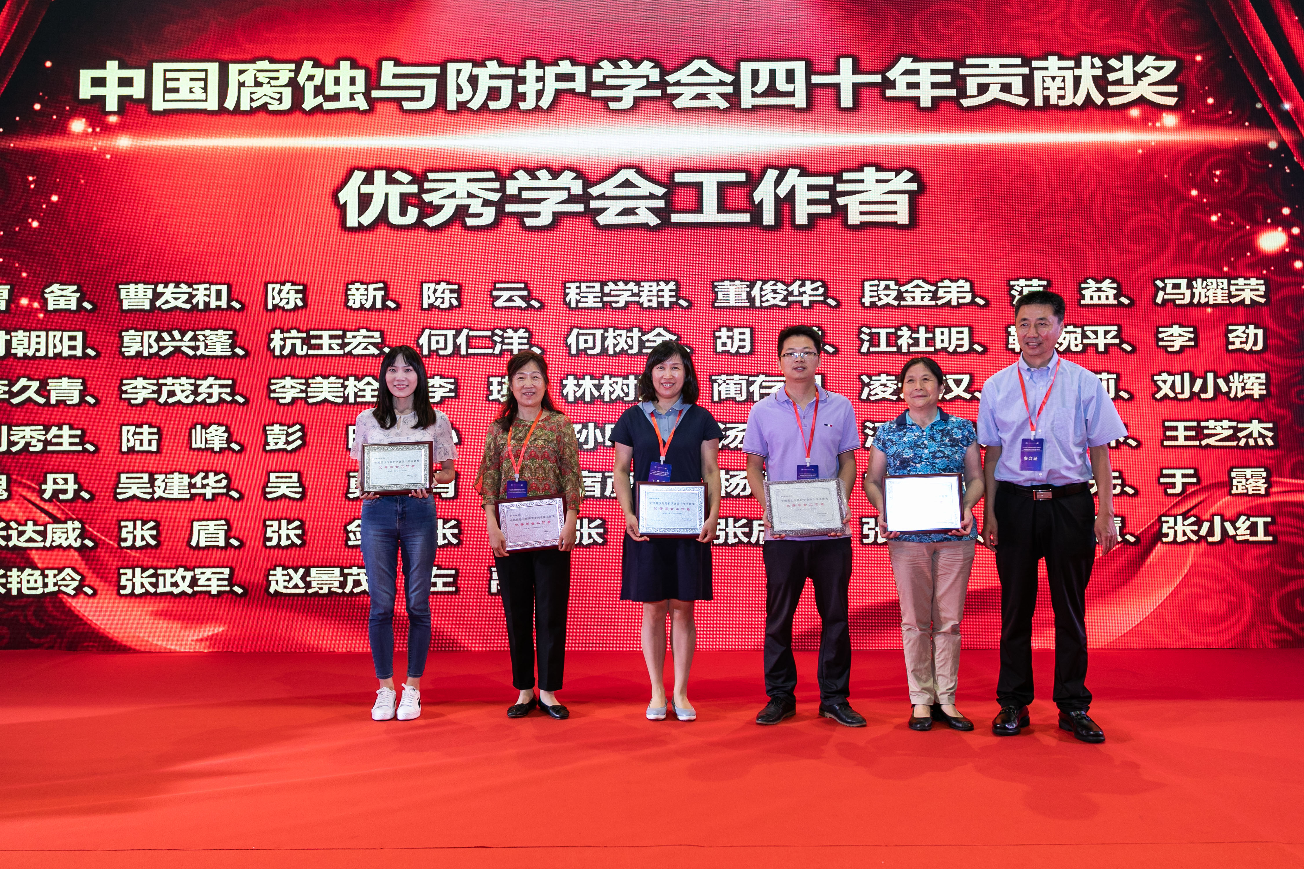 1979年,中国腐蚀与防护学会经中国科协批准在杭州正式成立,目前已有23个专业委员会、5工作委员会、1个标准化委员会,现有单位会员208家、个人会员7900余人。四十年来,各专业委员会、工作委员会、企业理事会、高等院校、科研院所以及各企事业单位和全国广大的腐蚀与防护工作者,他们活跃在我国国民经济各领域中,为我国腐蚀与防护事业的科学技术进步和发展做出了突出的贡献。为表彰他们所做出的成绩,经学会常务理事会决定,对我国腐蚀与防护领域的科学技术进步和发展做出突出贡献的集体、个人进行表彰并授予荣誉称号。会上,学会秘书长杜翠薇教授宣读了中国腐蚀与防护学会的表彰决定。共有10个分支机构、36个科技团队、48个企业、15个防腐蚀施工企业以及33名企业领导人、25名学会会员、48名学会工作者授予相应的荣誉称号。会上学会荣誉理事长、理事长、副理事长、长垣县副县长分别为获奖单位、获奖人颁发了奖牌并与获奖代表合影,董俊华研究员代表获奖集体、个人发表了获奖感言。