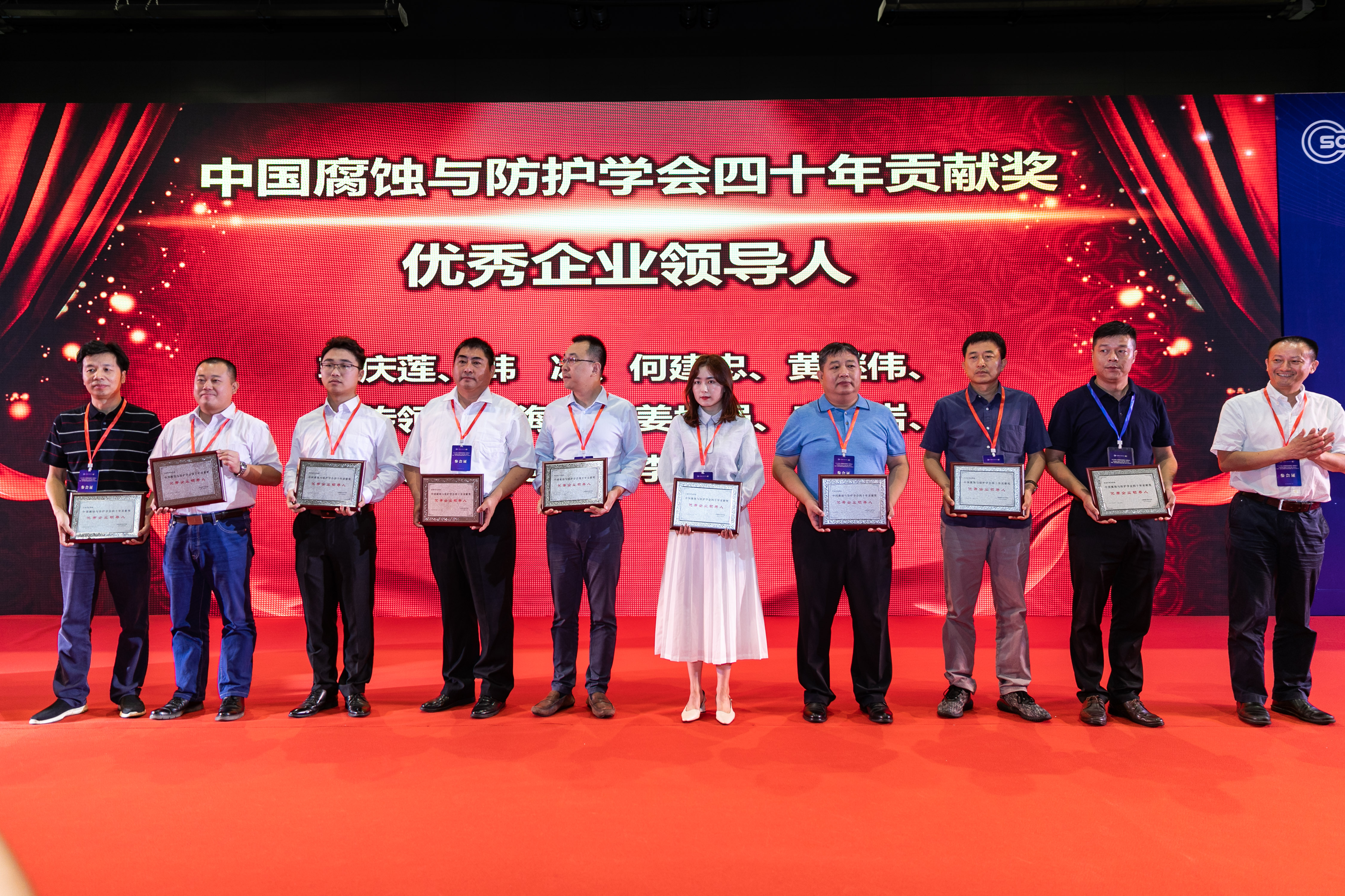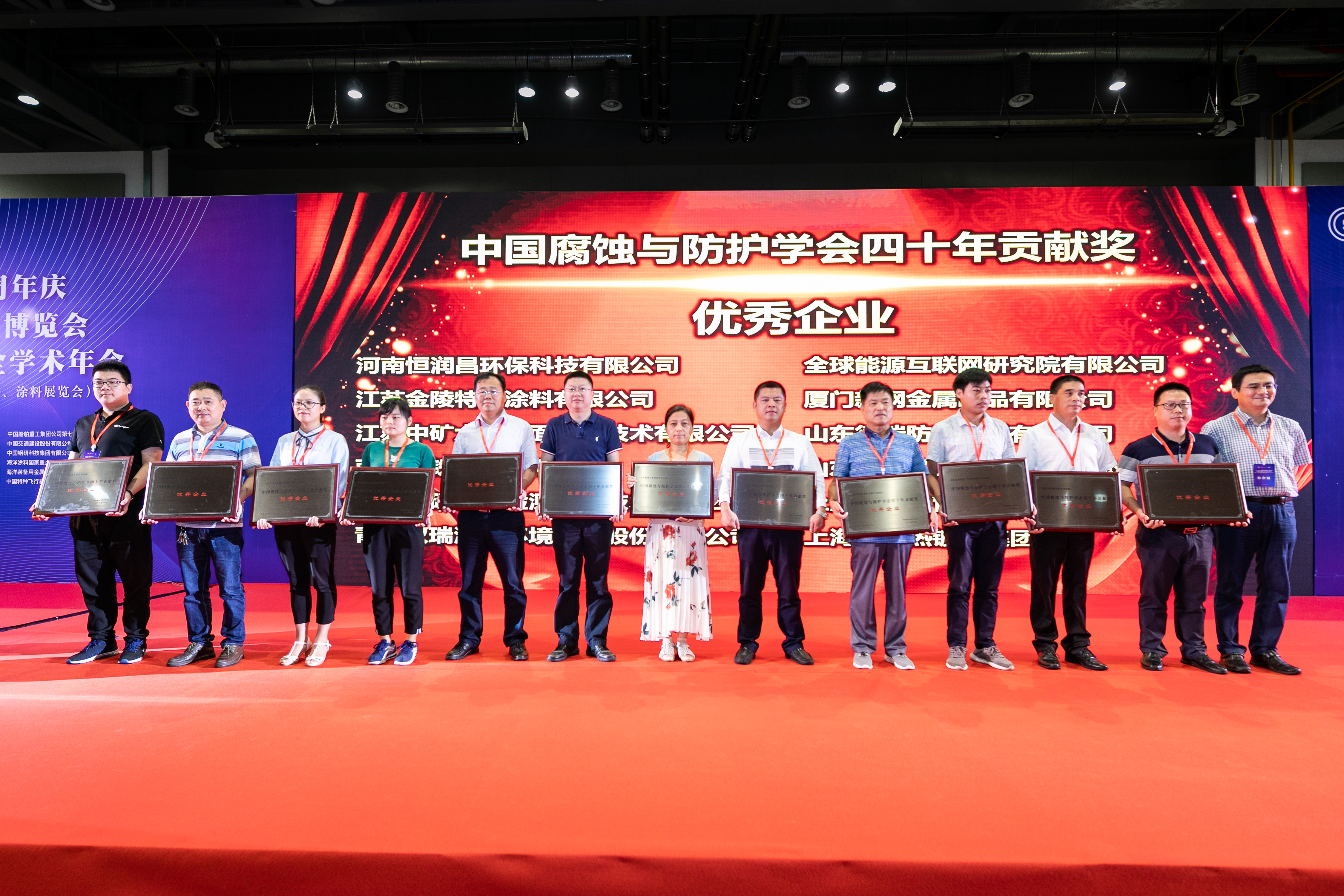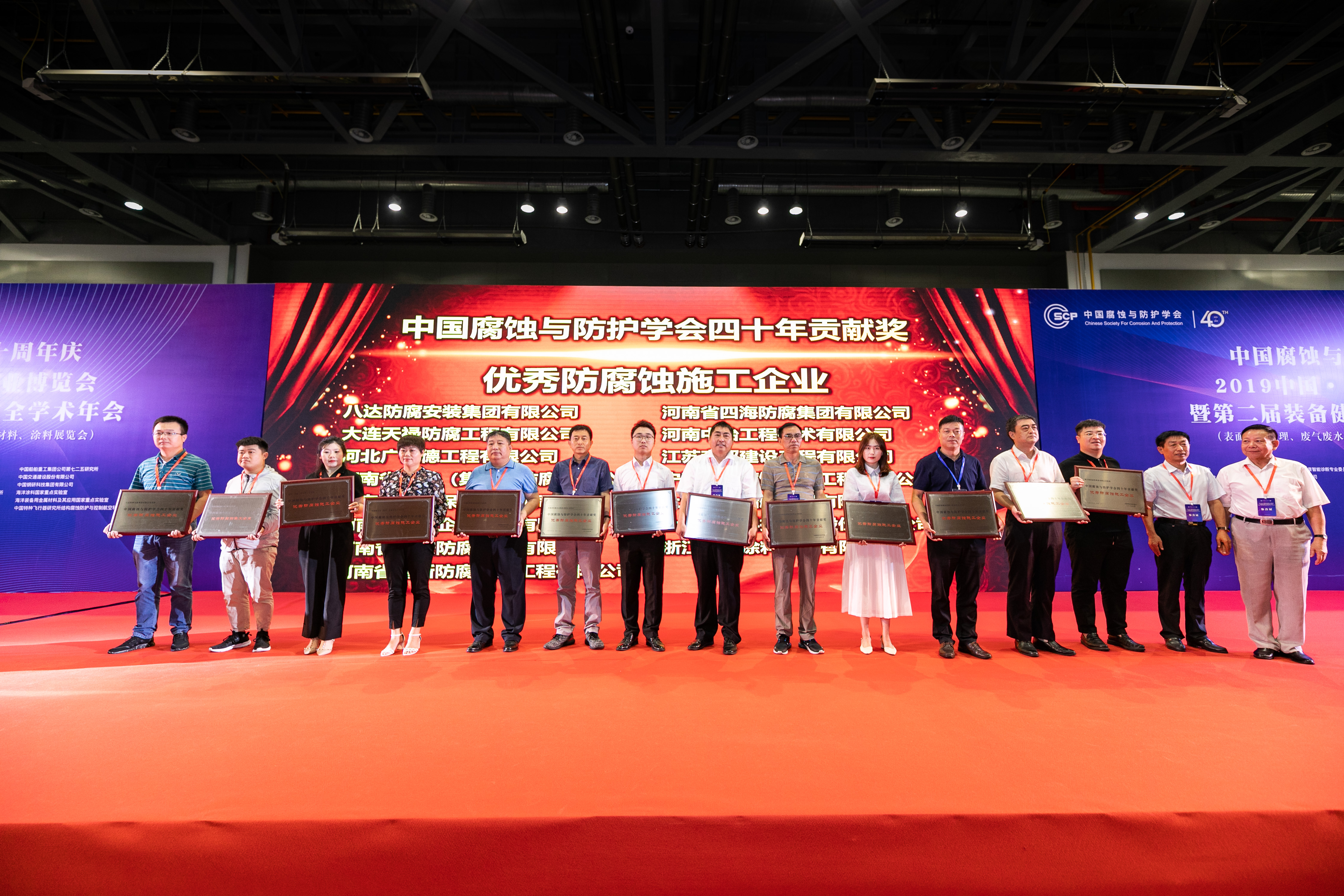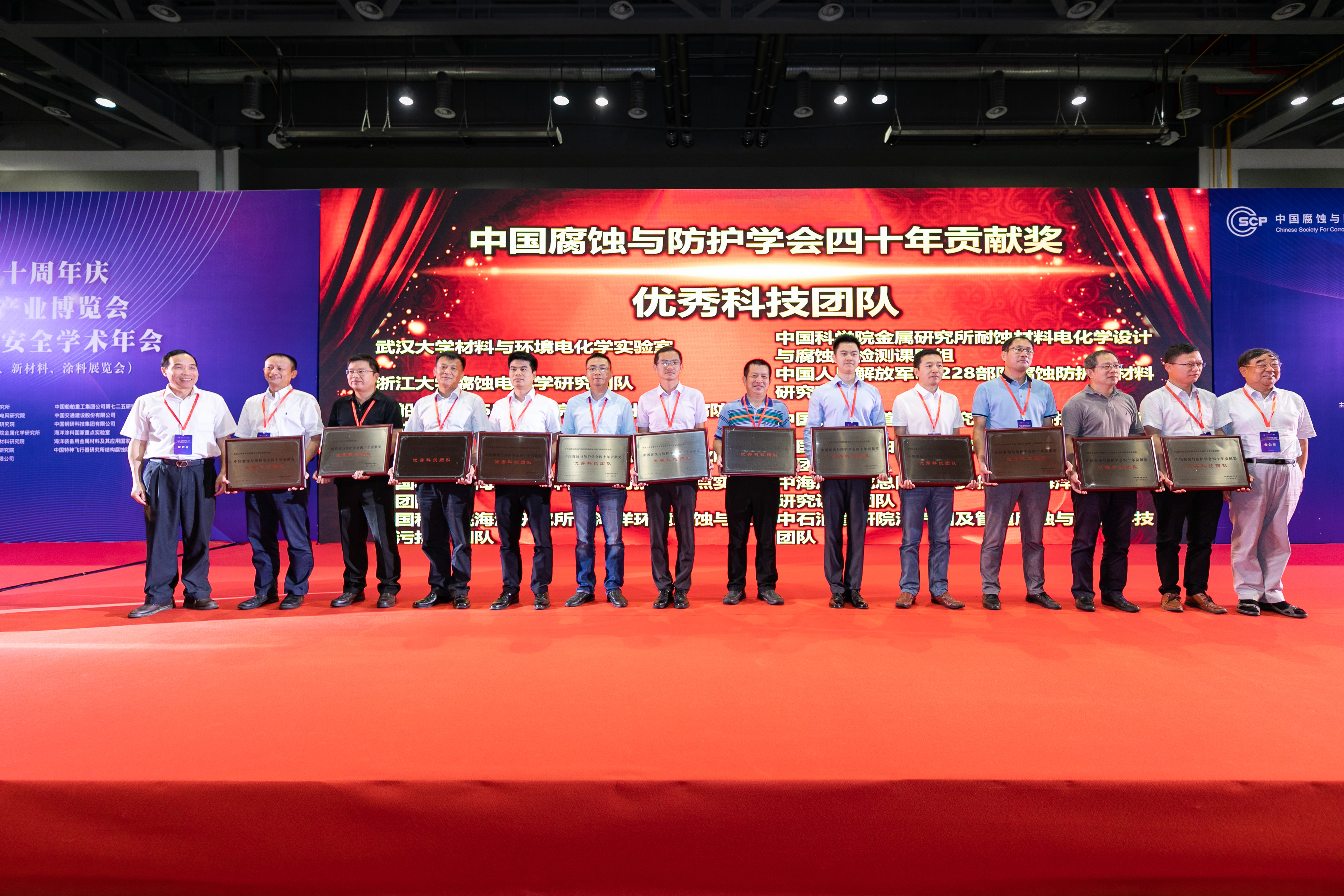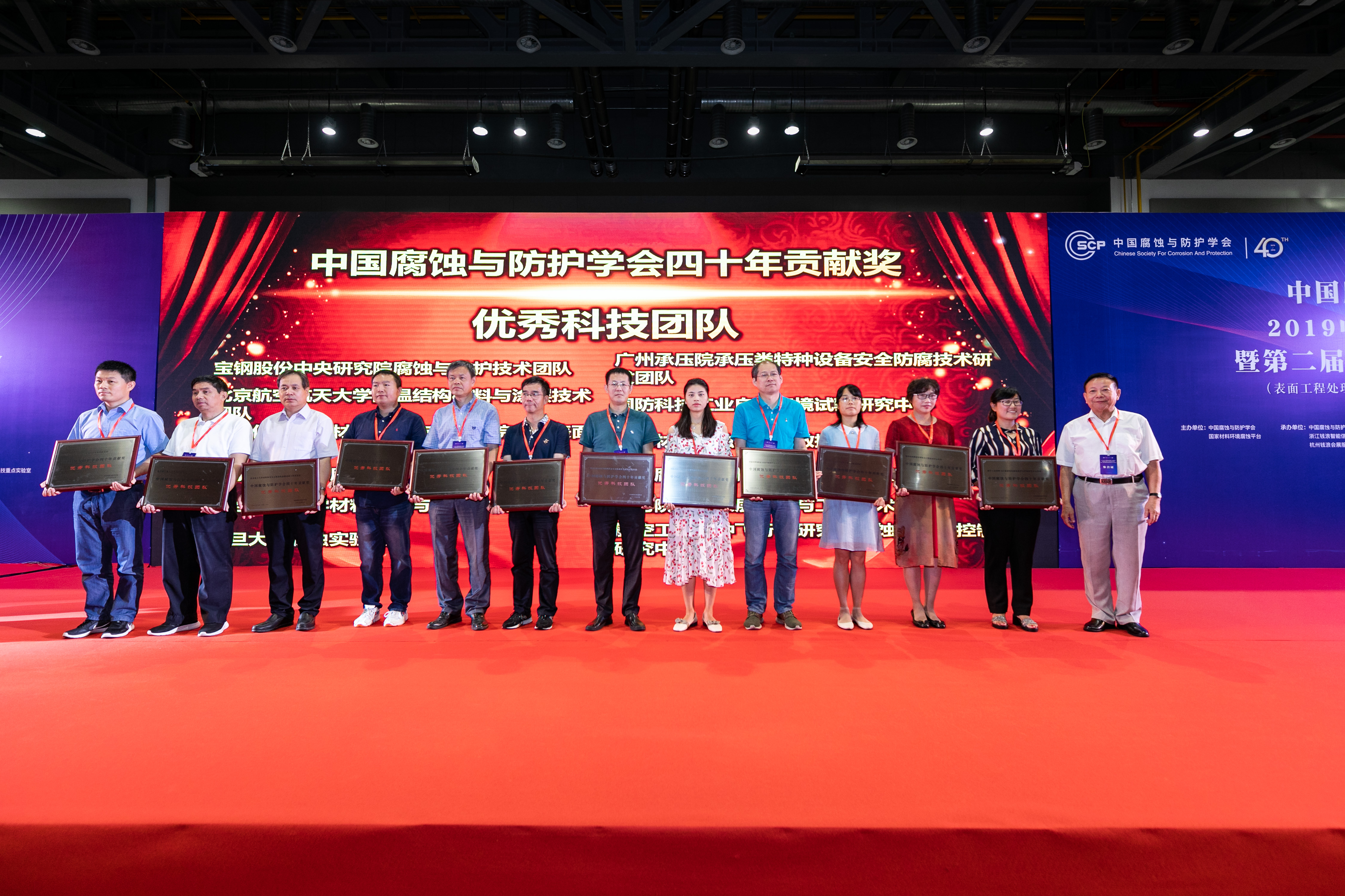 1979年,中国腐蚀与防护学会经中国科协批准在杭州正式成立,目前已有23个专业委员会、5工作委员会、1个标准化委员会,现有单位会员208家、个人会员7900余人。四十年来,各专业委员会、工作委员会、企业理事会、高等院校、科研院所以及各企事业单位和全国广大的腐蚀与防护工作者,他们活跃在我国国民经济各领域中,为我国腐蚀与防护事业的科学技术进步和发展做出了突出的贡献。为表彰他们所做出的成绩,经学会常务理事会决定,对我国腐蚀与防护领域的科学技术进步和发展做出突出贡献的集体、个人进行表彰并授予荣誉称号。会上,学会秘书长杜翠薇教授宣读了中国腐蚀与防护学会的表彰决定。共有10个分支机构、36个科技团队、48个企业、15个防腐蚀施工企业以及33名企业领导人、25名学会会员、48名学会工作者授予相应的荣誉称号。会上学会荣誉理事长、理事长、副理事长、长垣县副县长分别为获奖单位、获奖人颁发了奖牌并与获奖代表合影,董俊华研究员代表获奖集体、个人发表了获奖感言。