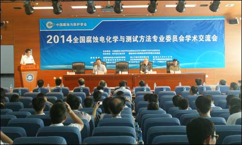 2014年7月22日,为期两天的“2014年全国腐蚀电化学及测试方法学术交流会”在哈尔滨工程大学召开。中国腐蚀与防护学会秘书长北京科技大学李晓刚教授、腐蚀电化学及测试方法专业委员会主任浙江大学张鉴清教授、哈尔滨工程大学副校长夏桂华教授出席了本次会议并发表讲话。台湾防蚀工程学会理事长、世界腐蚀理事会理事、成功大学蔡文达教授,中国腐蚀与防护学会副理事长华中科技大学郭兴蓬教授,北京科技大学乔利杰教授,厦门大学林昌健教授,中国腐蚀与防护学会秘书长北京科技大学李晓刚教授,中国腐蚀与防护学会监事长北京化工大学左禹教授,台湾工业技术研究院罗俊雄博士,大连理工大学雷明凯教授,浙江大学张昭教授分别作了题为《Ti-6Al-4V合金在离子液体中的应力腐蚀破裂行为》、《导电聚吡咯腐蚀的电化学机制》、《金属腐蚀的原子力显微镜研究》、《局部腐蚀的电化学影像-从实验室到工业应用》、《材料腐蚀信息学基础:材料腐蚀基因工程及应用》、《亚稳态孔蚀电位Em的意义及其与材料钝化性能的关系》、《海生物附着对碳钢腐蚀之电化学研究》、《奥氏体不锈钢中氮的电化学腐蚀行为》、《腐蚀活性能量及其应用初讨》的大会特邀报告。