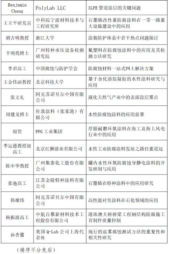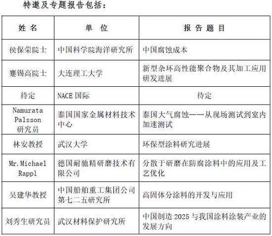 院士特邀报告,科研、高等院校以及国内外涂料、检测、施工等业界的学者、专家专题报告。
